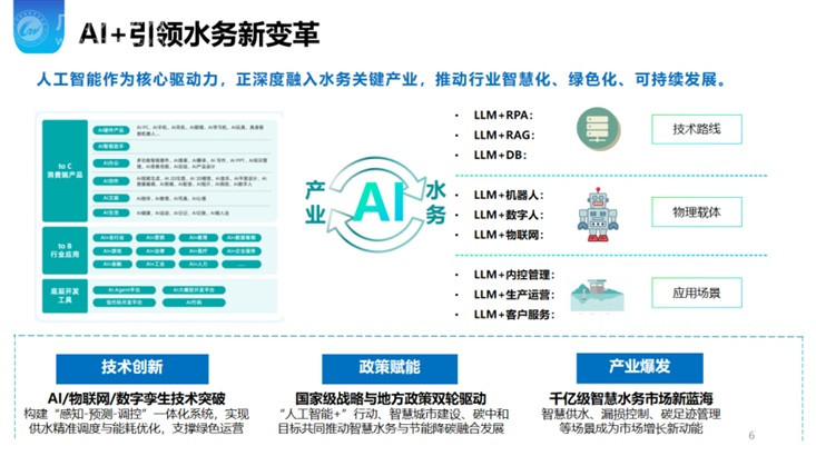 人工智能作为核心驱动力,正深度融入水务关键产业,推动行业智慧化、绿色化、可持续发展。