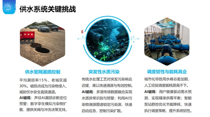 面对供水管网漏损控制、突发性水质污染、调度韧性与能耗高企等挑战,AI带来破局之法。