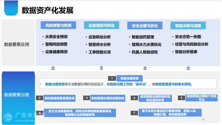 智慧水务进入数据资产为核心新时代,数据驱动饮水安全精准监控预警,实现从水源到龙头全过程水质追溯,实现突发事件识别与快速响应。