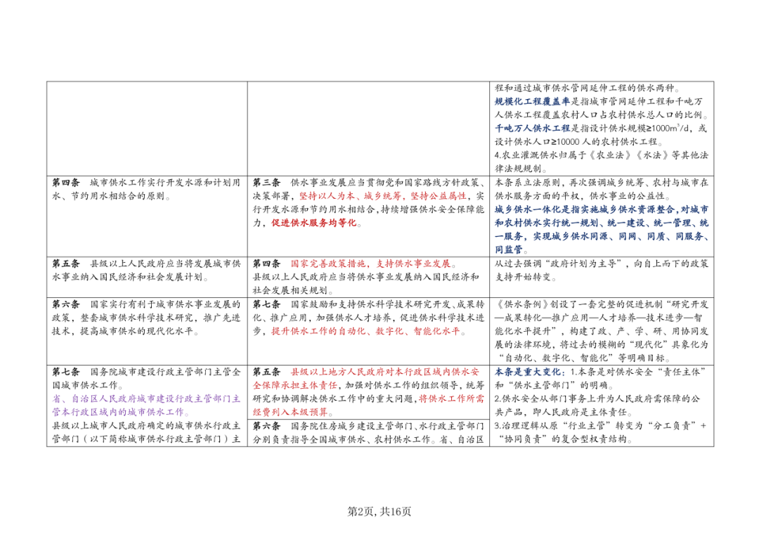 专业解读:《供水条例》与《城市供水条例》逐条对比及解读
