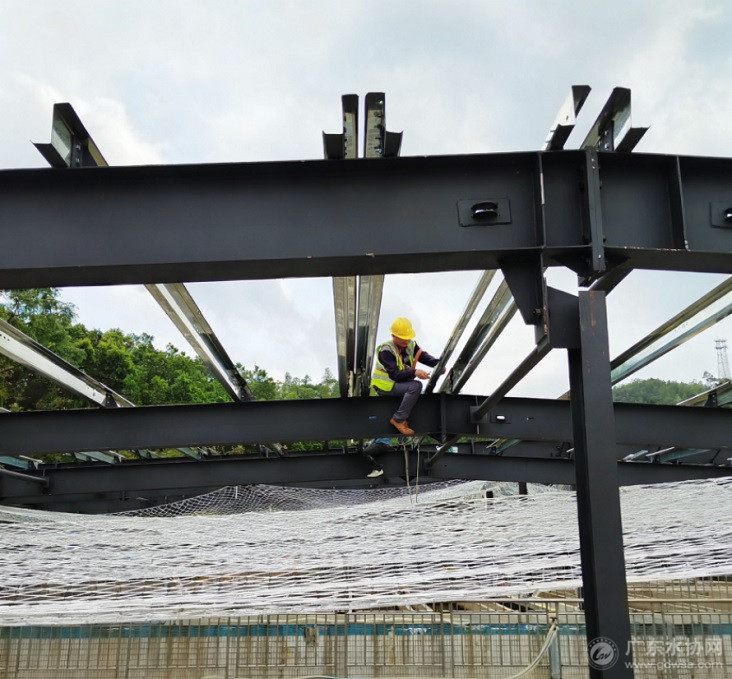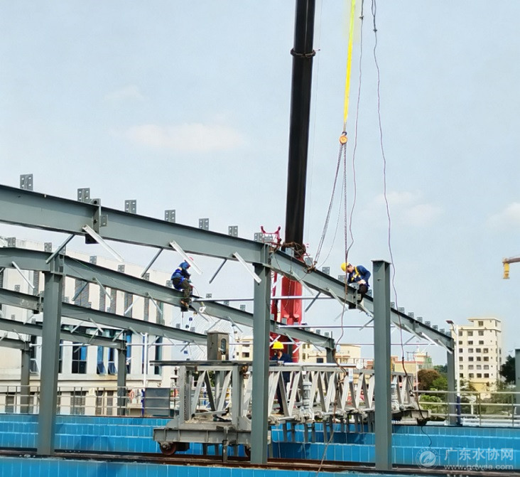 其中,沙口水厂施工难度最高。作为对外参观示范水厂,其开阔区域多用于绿化景观打造,无法安装光伏设备,核心生产区域的平流沉淀池成为唯一可选的安装地点。由于水池间施工区域狭窄,大型设备无法进入,施工团队与水厂工作人员协同作战,创新制定“分池施工、错峰停产”方案。经过150天昼夜不间断奋战,成功在平流沉淀池多个区域安装光伏设备,全程未对城市供水造成任何影响。