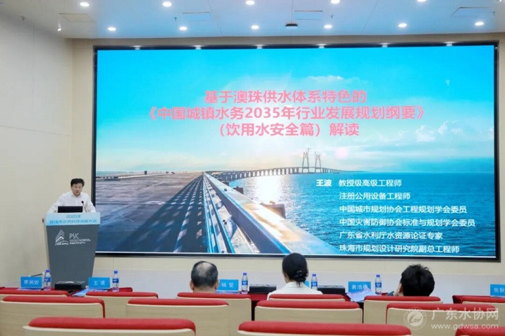 广东省滨海地区防灾减灾技术研究中心总工、珠海市规划设计研究院副总工程师王波,解读了基于澳珠供水体系特色的《中国城镇水务2035年行业发展规划纲要》。他结合珠海与澳门供水联动的实际,提出优化区域供水协同机制的建议,将推动珠澳两地供水保障一体化,让珠澳两地居民享受到更稳定、更优质的跨境供水服务。