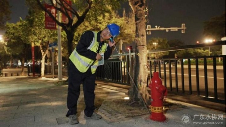开幕式期间,广州水投自来水公司工作人员对奥体中心场馆周边持续开展巡检探漏
