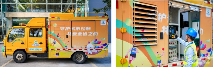 广州水投自来水公司应急抢险供水车可快速应对、高效处置突发性停水、管道故障等紧急场景