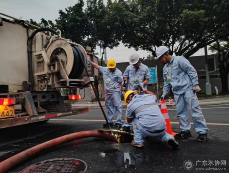 广州水投排水公司工作人员对奥体中心场馆内排水管网进行清疏作业