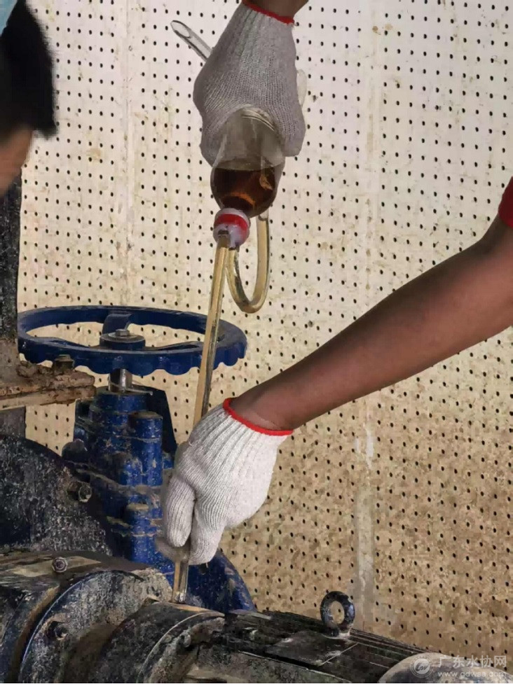 在常态化设备维护中,桥东水厂维修班立足实际、主动创新,针对污泥车间螺杆泵加油保养过程中存在的效率低、加注不均等问题,自主设计制作专用加油工具。该工具结构简单、操作便捷,实现了油品精准、快速加注,有效避免油料浪费与设备污染,显著提升了维护效率与设备运行稳定性。