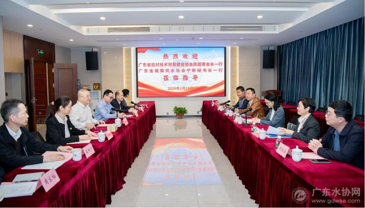为进一步提升协会服务和管理水平,加强跨行业学习互鉴,2026年1月13日,广东省城镇供水协会(以下简称“省水协”)党支部书记、秘书长宁昕,省水协专家委员会副主任董玉莲一行4人及广东省应对技术贸易壁垒协会(以下简称“TBT协会”)会长陈超青一行2人赴广东省建设工程质量安全检测和鉴定协会(以下简称“省检测鉴定协会”)进行实地走访与座谈交流,三方围绕党建工作、内部管理、职业技能培训及认定、科学技术奖申报及团体标准建设等多个领域进行了深入探讨。省检测鉴定协会会长林兆雄等领导出席会议。