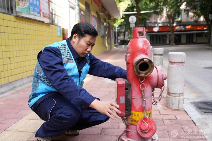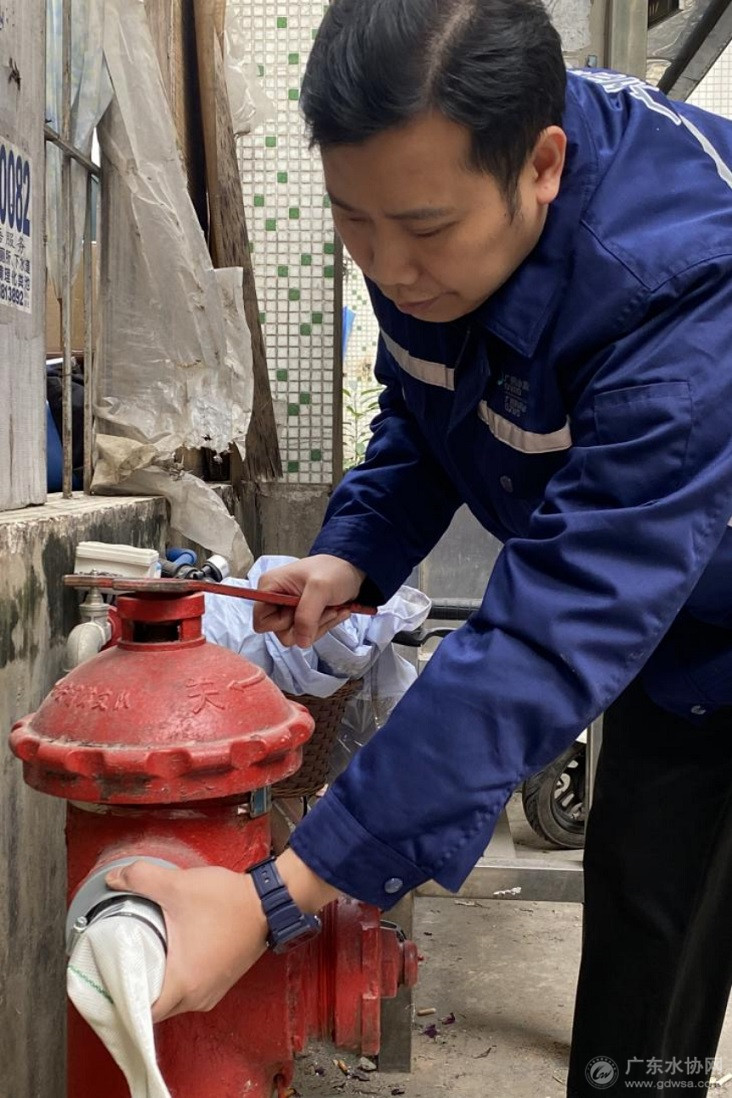 广州自来水职工梁康开启消火栓
