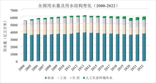 关于“水需求达峰”的争论——各抒己见。近期多位行业专家及研究机构就这一话题发表文章参与讨论,意见不一。对此,有几项数据值得一看:从2000年到2022年,全国用水量并没有明显增长,基本在6000亿m3左右徘徊,如果扣除人工生态环境补水,国民经济用水量已显跨过拐点的迹象;而在这段时间内,我国人口数量增长了11%,GDP翻了11倍。数据对比可以发现,过去预测未来需求常用的一些方法——如万元GDP用水量、万元工业增加值用水量等,实际上并不适用。认识以及研究方法的局限性带来了一些问题。