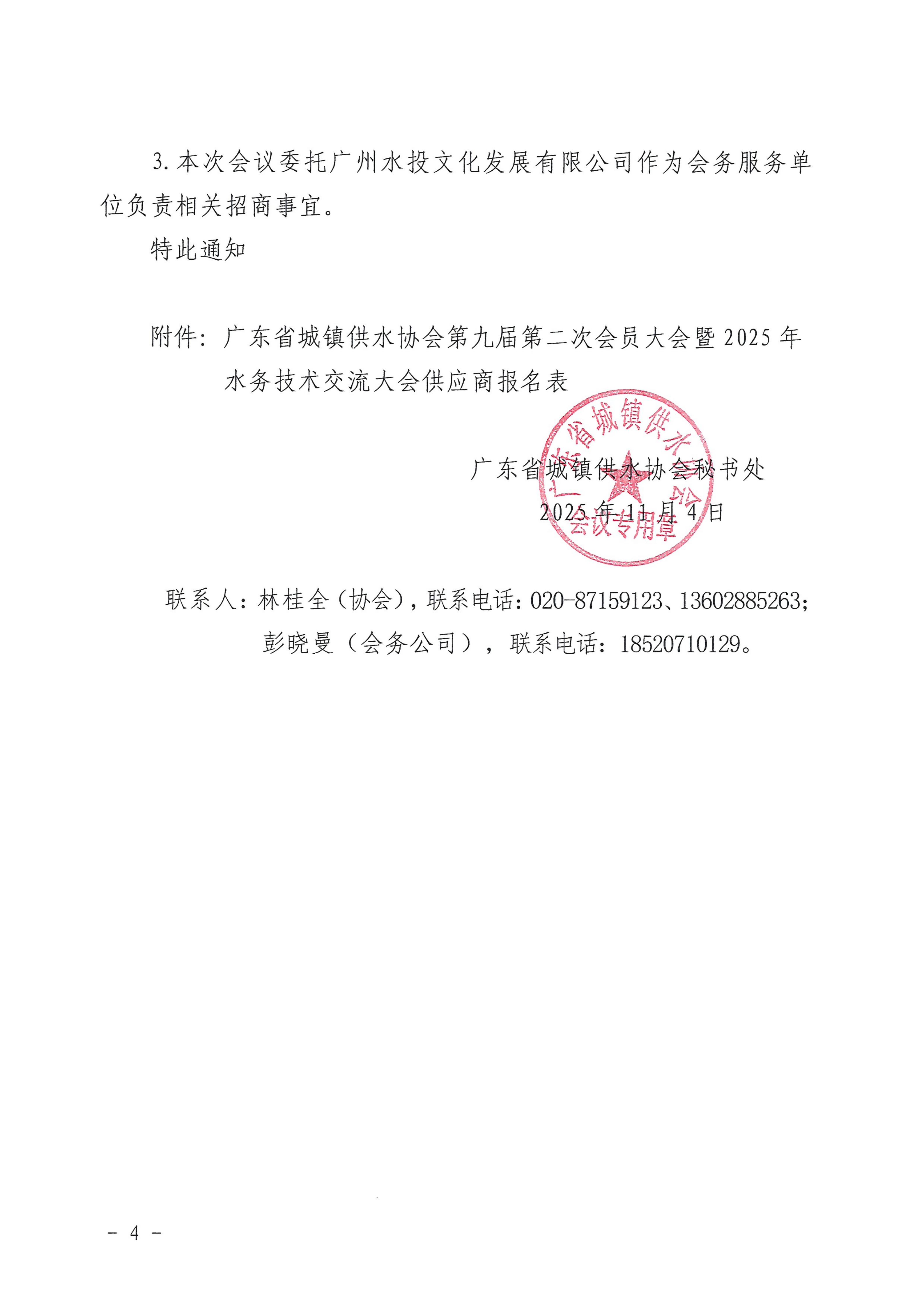 | 文件名称: | 关于广东省城镇供水协会第九届第二次会员大会暨2025年水务技术交流大会设备展示招商通知 | ||
