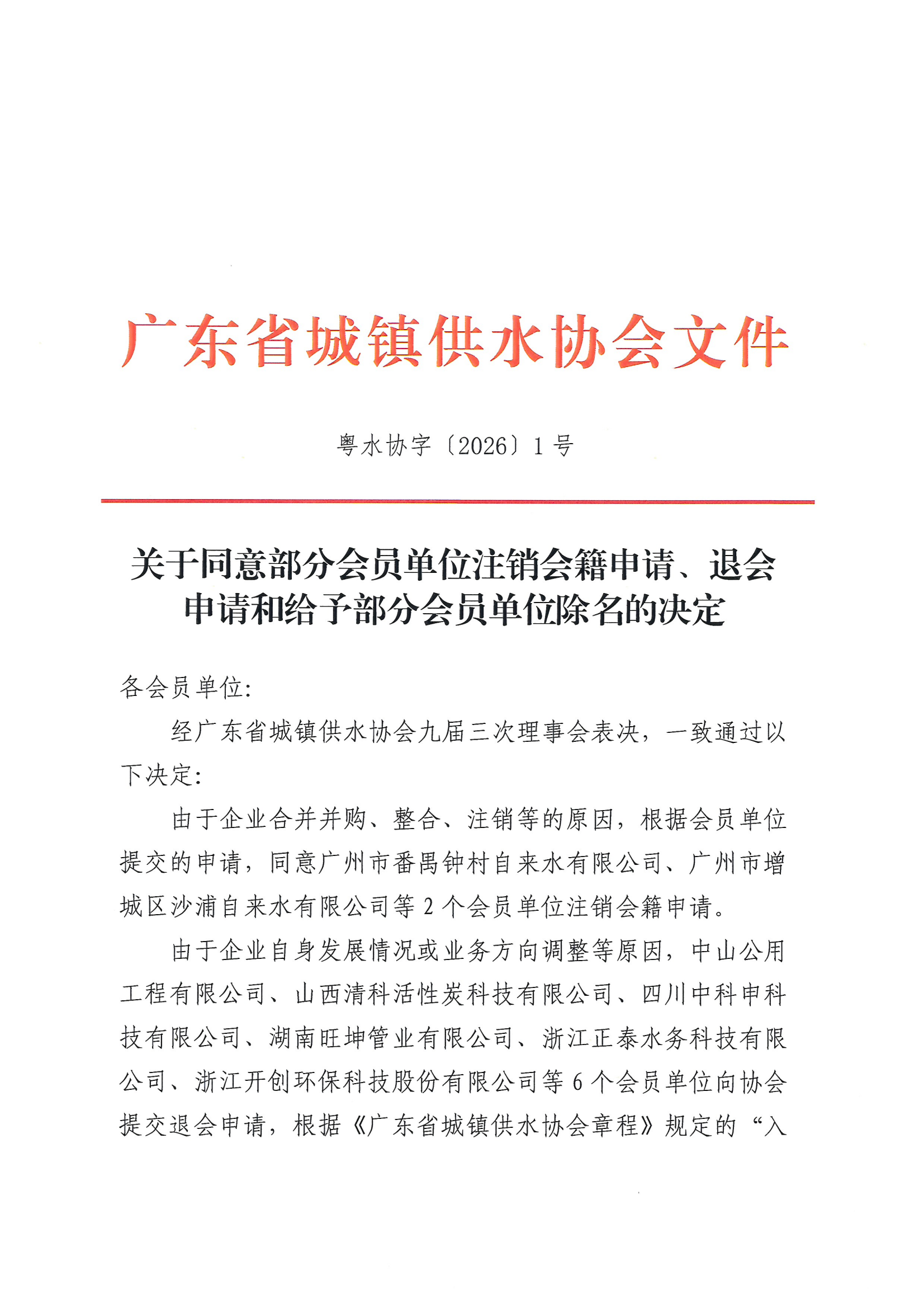 下一篇:关于吸收佛冈县城乡饮用水服务中心、翁源县龙泽水资源发展投资有限公司等单位入会的决定[ 01-07 ]