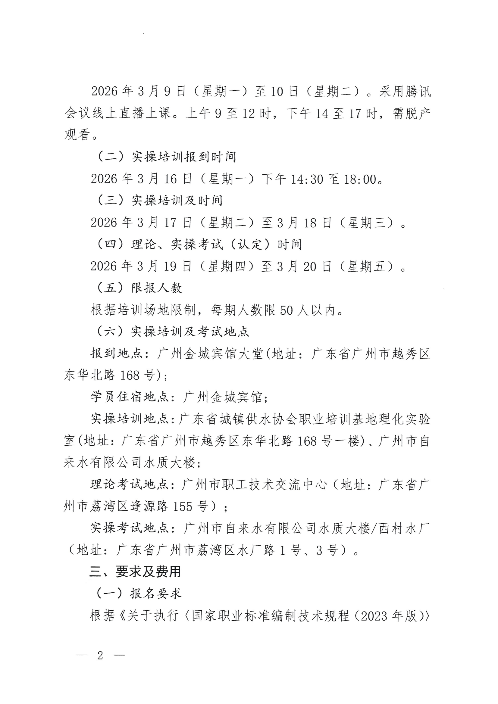 | 文件名称: | 关于举办2026年第一期水生产处理工培训及职业技能等级认定的通知 | ||